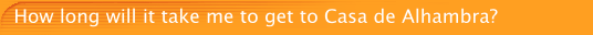 From the UK and Northern Europe the flight is apprxiamtaley two and a half hours to Southern Spain.  The table below gives an indication of how long it takes to get to Casa De Alhambra from the airport.  All times are approximate as many factors can affect the journey such as traffic, whether you use the motorway or other roads and whether you decide to break your journey.